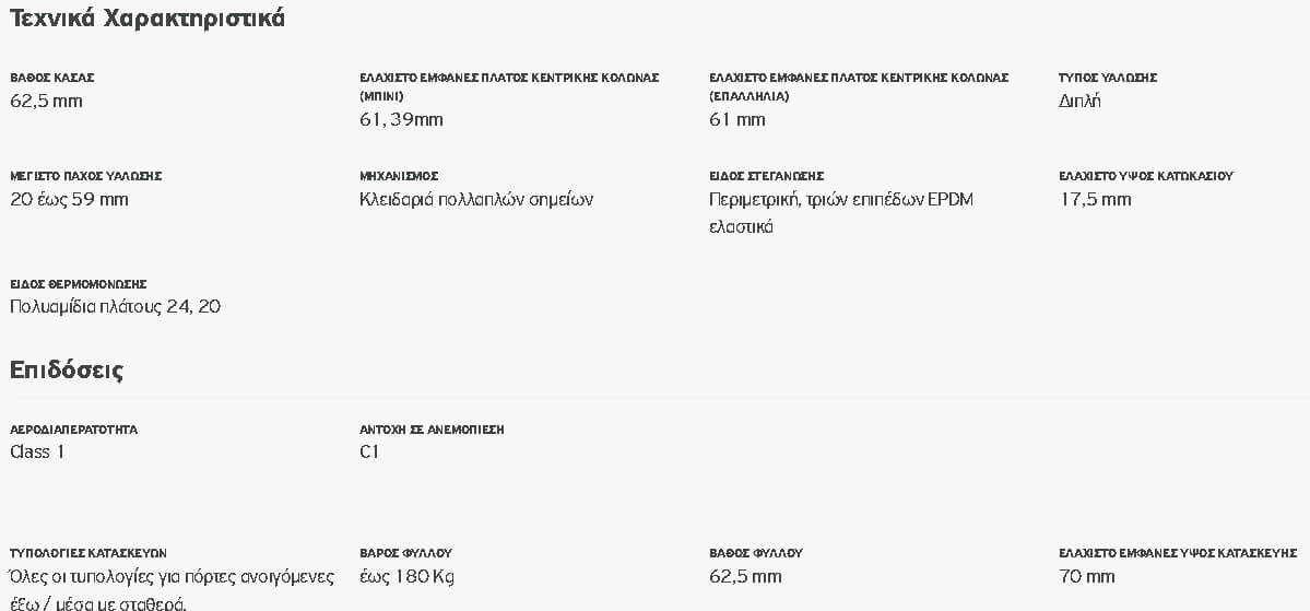 - Υψηλή ποιότητα με πιστοποιημένες επιδόσεις κουφώματος